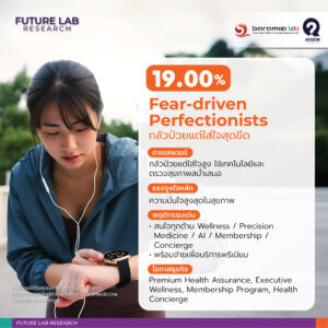 กลุ่มนี้มีทั้ง “ความกลัวและความใส่ใจ” สูง ใช้เทคโนโลยีและตรวจสุขภาพอย่างสม่ำเสมอ พร้อมจ่ายเพื่อความมั่นใจสูงสุด